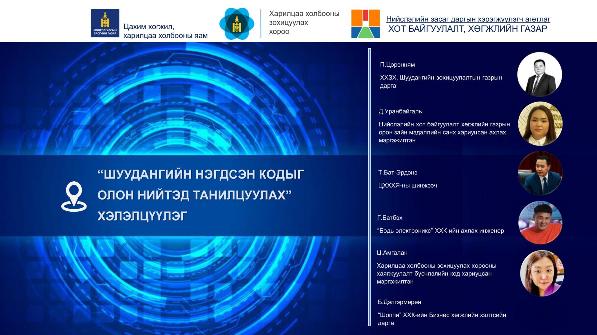 ЦХХХЯ, Харилцаа холбооны зохицуулах хороо, Нийслэлийн хот байгуулалт, хөгжлийн газар, Газар зохион байгуулалт, геодези, зураг зүйн газрууд хамтран шуудангийн нэгдсэн кодыг олон нийтэд таниулан сурталчлах, мэдээлэл хүргэх зорилго бүхий сургалт, хэлэлцүүлгийг өн10 сарын 13-ны өдөр зохион байгууллаа.